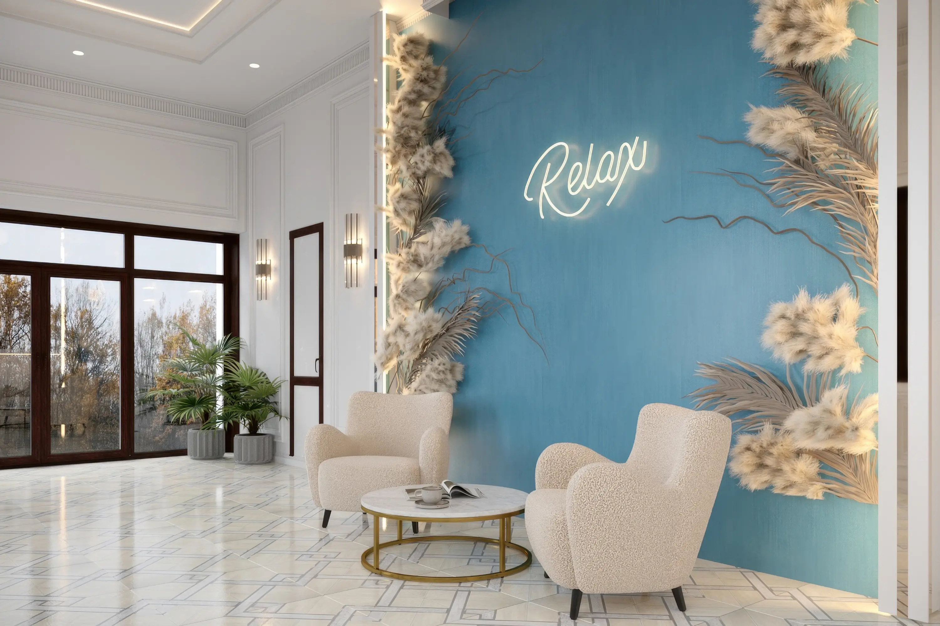 акцентная зона, стены, потолок