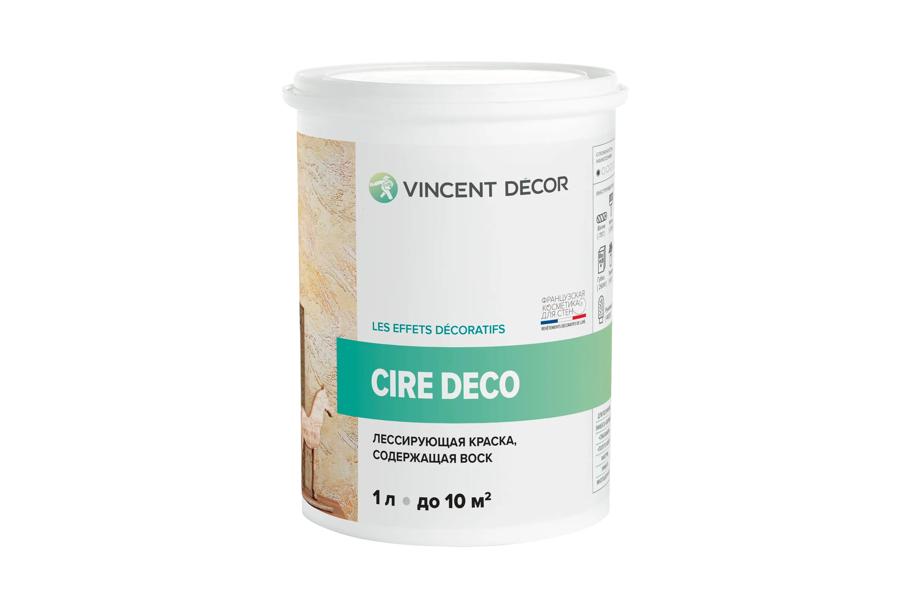 Лессирующая краска с воском для создания эффекта благородной патины. Подчеркивает рельеф поверхностей, создавая полупрозрачное покрытие с эффектом старины.