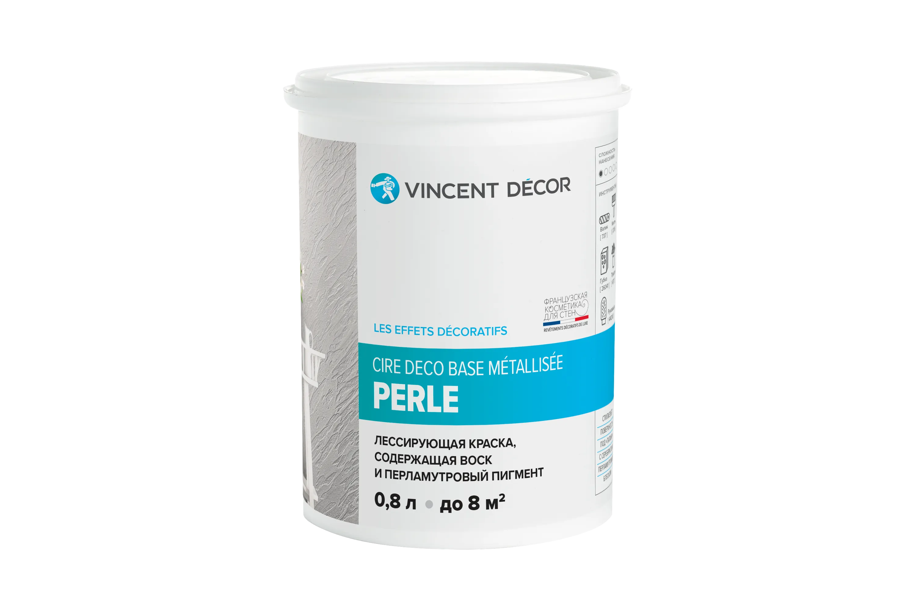 Полупрозрачная финишная лессирующая краска с серебристо-перламутровым эффектом для рельефных стен. Подчеркивает фактуру, создавая элегантный вид состаренного серебра. Легко наносится кистью или валиком, а с помощью губки можно добавить глубины и объема.