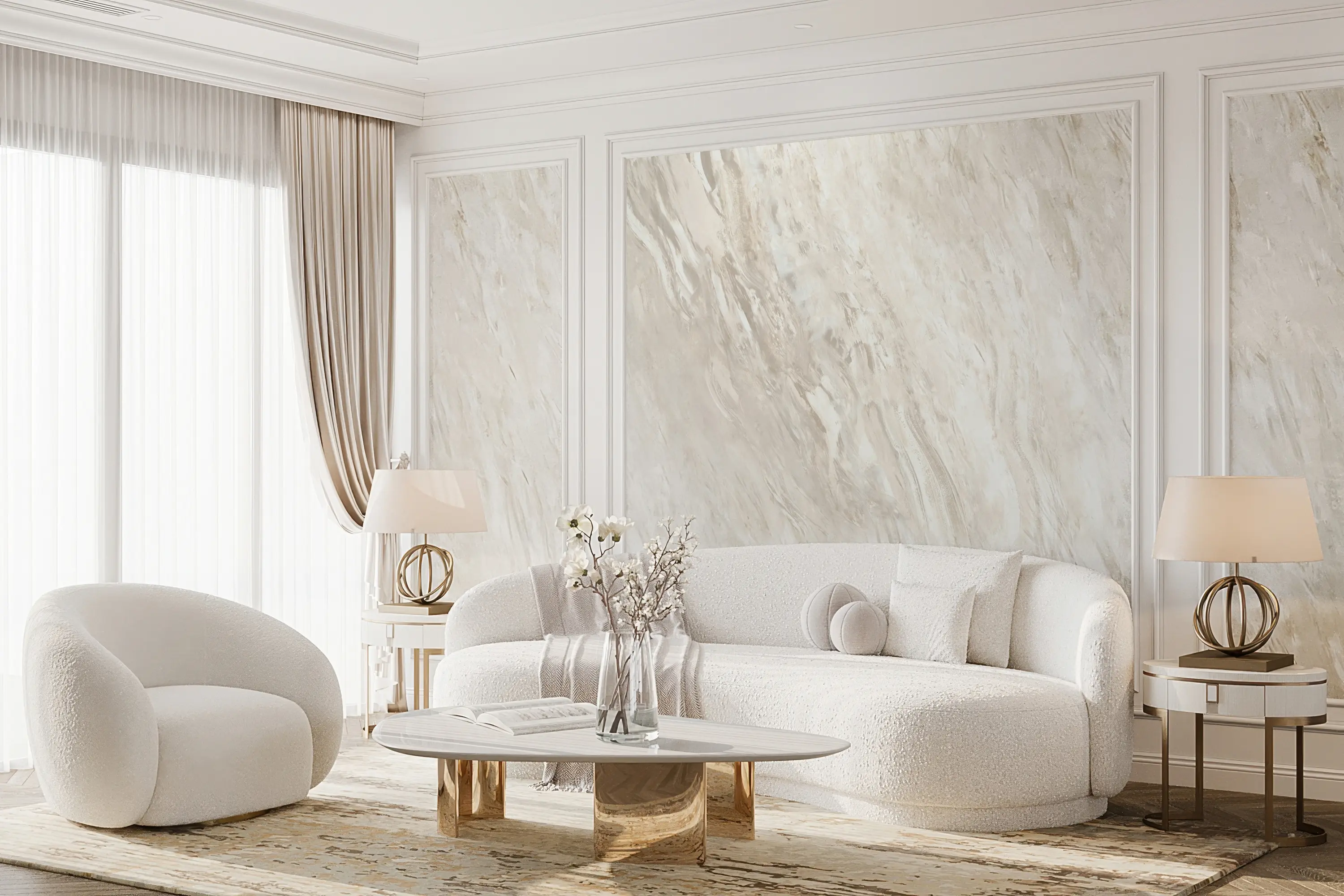 Идеальное решение для интерьеров с акцентом на классическую роскошь. Покрытие наносится в несколько слоёв с полировкой и образует прочную износостойкую поверхность. «Ноли» гармонично впишется в парадные гостиные, холлы и ванные комнаты в стиле неоклассика, ар-деко или современная классика.